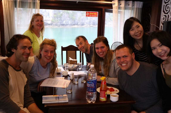 今天是下龍灣tour的最後一天,走的行程和買三天兩夜的人不一樣,所以我們早上一起共進早餐後就和部分人道別囉!玩三天兩夜的有來自澳洲的夫妻,來自荷蘭的Anita&Claire,天生憂鬱的加拿大農夫Roy,還有旅行還自備VODKA的David,雖然一開始都互不認識,但之後卻一起玩得很開心,這就是有緣吧!